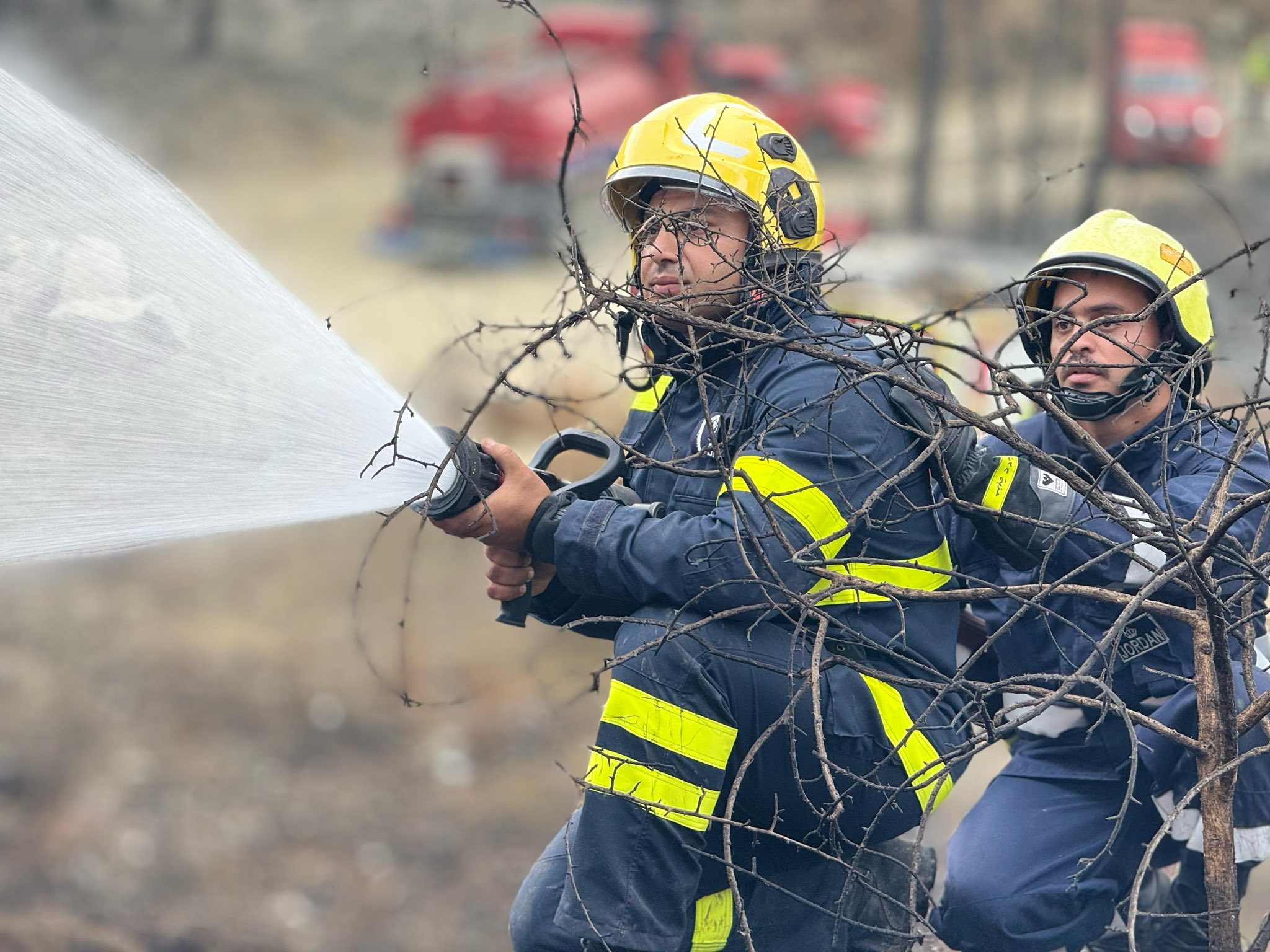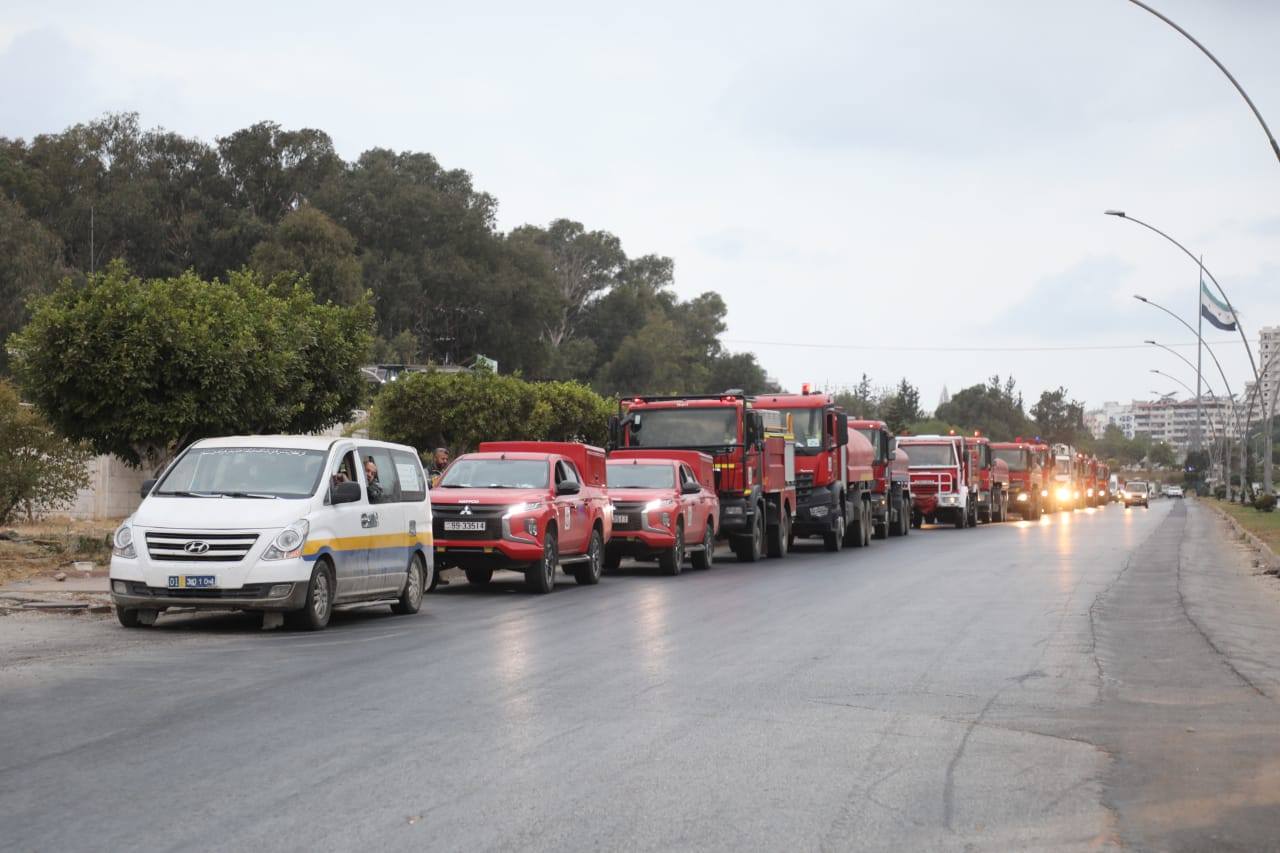 كما أرسل الدفاع المدني مركبات كاملة التجهيز ومتخصصة في الإطفاء والعمل في المناطق الوعرة وفي الغابات، وبكامل طواقمها من العاملين المتخصصين في عمليات الإطفاء والإنقاذ والإسعاف، فضلاً عن معدات حديثة لدعم الجهود من بينها بركتا تجميع مياه بسعة 35 م3 لكل منها.