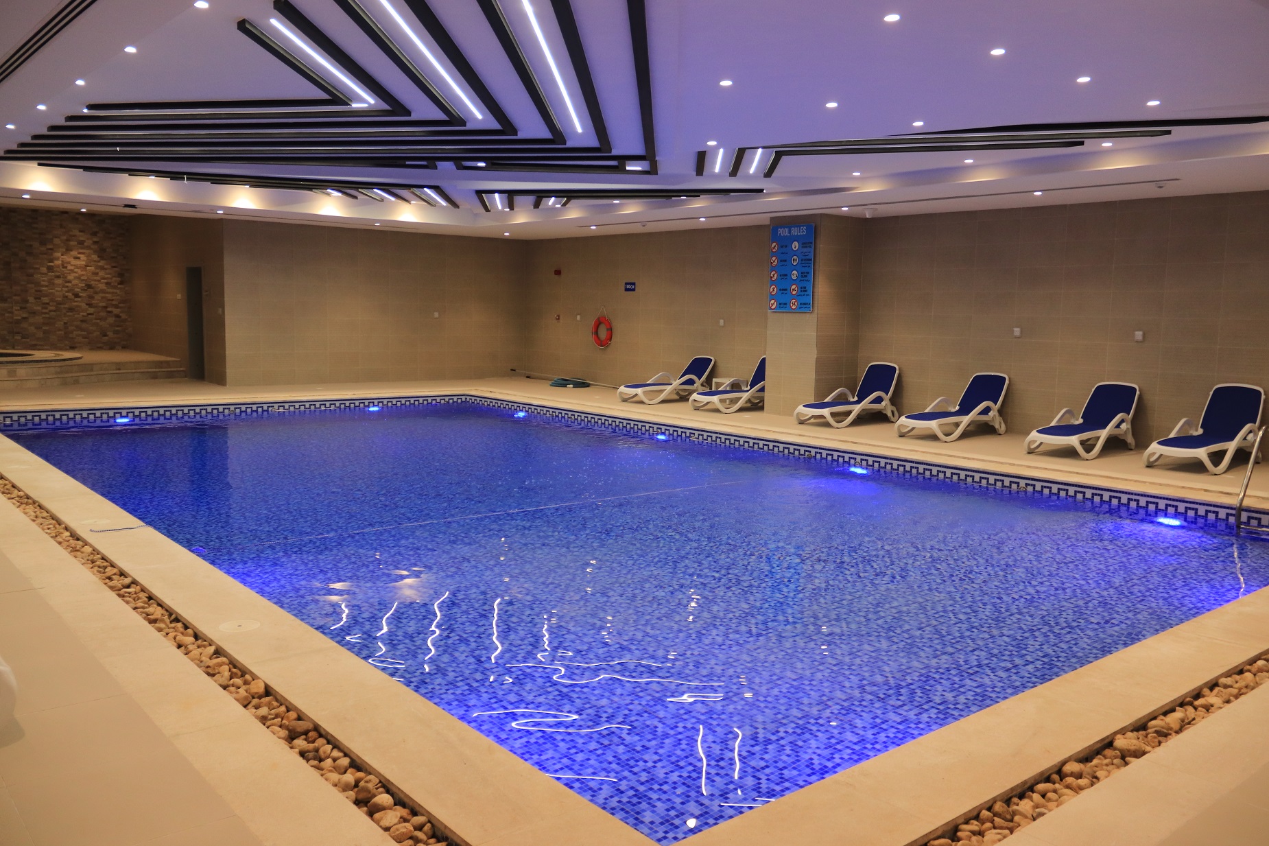 مسابح خارجية وداخلية.
