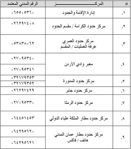 مديرية الأمن العام: الرمز البريدي ( 11110 ) صندوق بريد رقم : ( 935 )